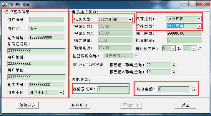 重新插張新卡到讀卡器,以上信息都根據(jù)自己要求設(shè)置好之后,單擊“開戶購電”。出現(xiàn)以下畫面。